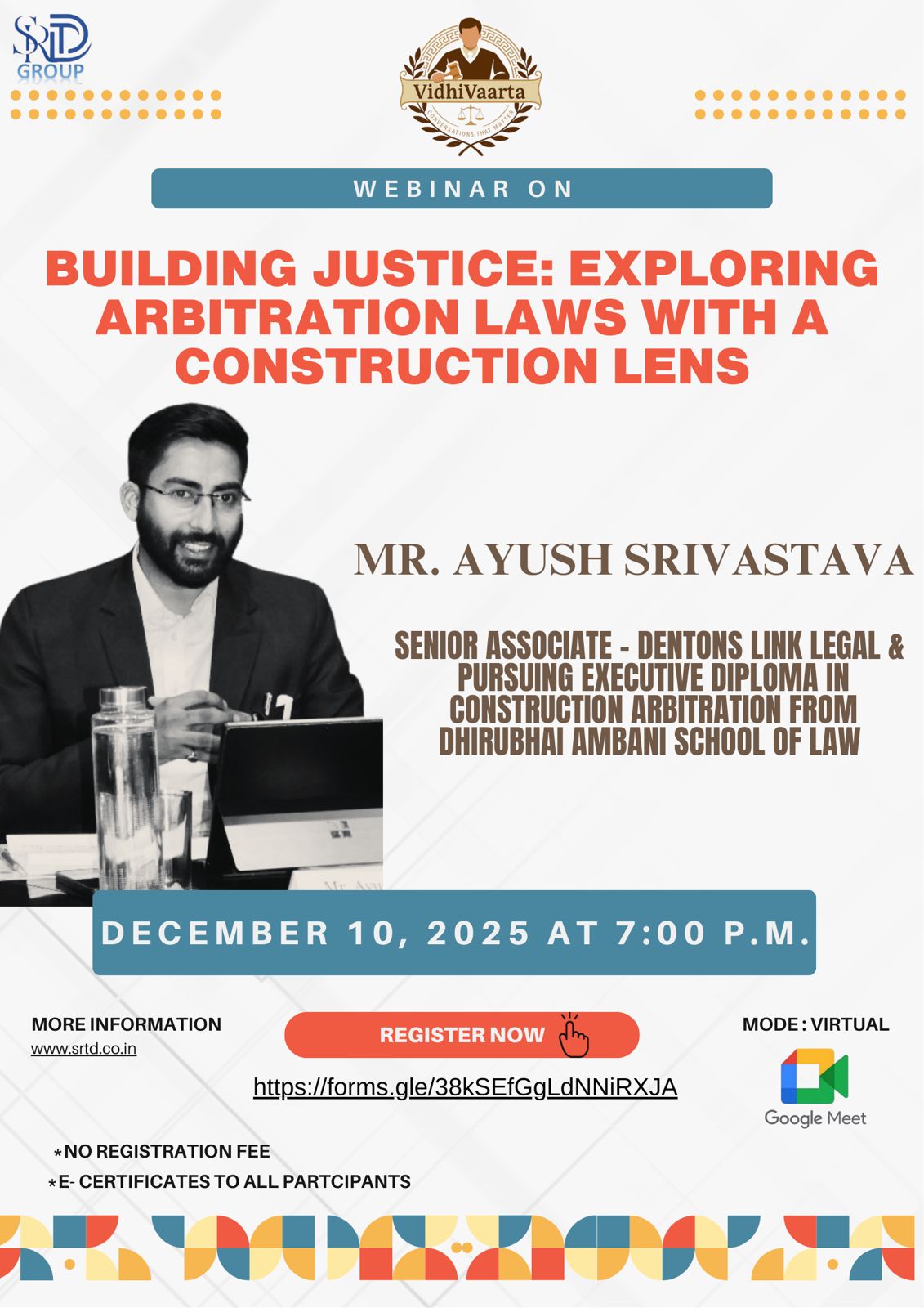 #Arbitration #ConstructionLaw #Webinar #VidhiVaarta #LegalEducation #LawStudents #FreeWebinar
